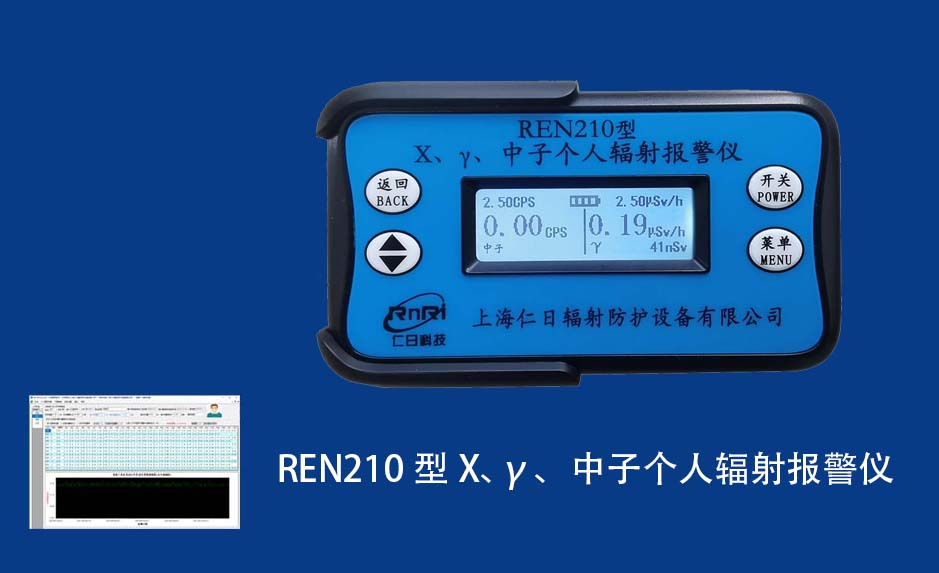 REN210型X、γ、中子個人輻射報警儀內(nèi)置SiPM和鋰玻璃晶體組成中子探測器儀器,采用反照率方式探測中子射線,同時也能探測X、γ射線。因此它可同事監(jiān)檢測X、γ、中子三種射線。能顯示工作場所的劑量當(dāng)量率和累積劑量,更換電池時,日期及累積數(shù)據(jù)能永久保存。可選配RenRiPersonal個人劑量管理軟件,該軟件可存儲多個人的歷史數(shù)據(jù),能記錄日累積、月累積、年累積、輻照時長、計算平均劑量率、扣除或不扣除本底輻射,且以文字和圖譜的方式展現(xiàn)數(shù)據(jù)。廣泛應(yīng)用于環(huán)保、化工、水泥、煤礦、土木工程、石油、醫(yī)院、疾控、進(jìn)出口商檢、核電、加速器、機場、中子源庫和其他安檢、邊境控制海關(guān)檢測等領(lǐng)域中的工作人員進(jìn)行個人安全防護監(jiān)測及放射性提示。